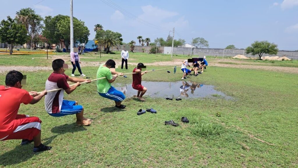 Algunas de las dinámicas fueron el juego de la soga, voleibol con globos y el juego de las sillas, mismas que fomentan la actividad física y trabajo en equipo entre adolescentes.