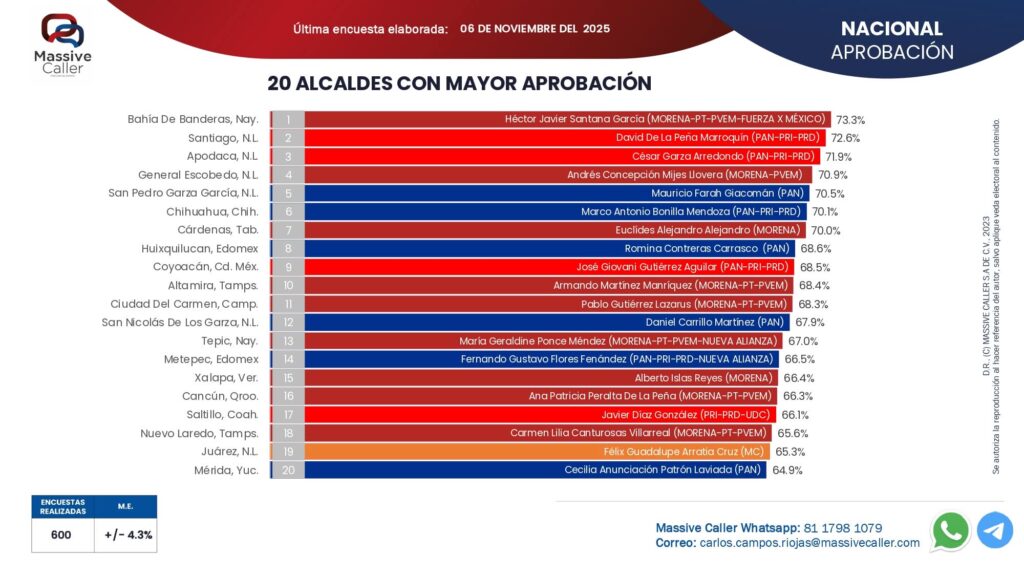 EL Dr. Martínez Manríquez ha logrado consolidarse como uno de los diez presidentes municipales mejor evaluados de México, de acuerdo con la encuesta nacional publicada por Massive Caller el pasado 06 de noviembre..