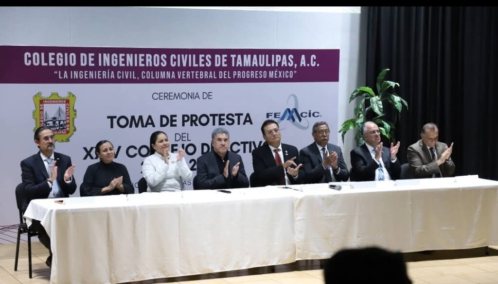 Tuve el honor de tomar protesta al XXIV Consejo Directivo 2026–2027 del Colegio de Ingenieros Civiles de Tamaulipas, A.C., en una emotiva ceremonia realizada en el auditorio de la Cámara Mexicana de la Industria de la Construcción.