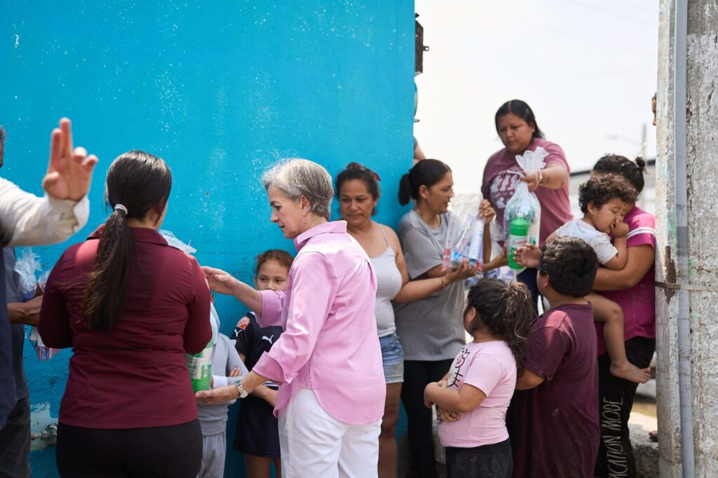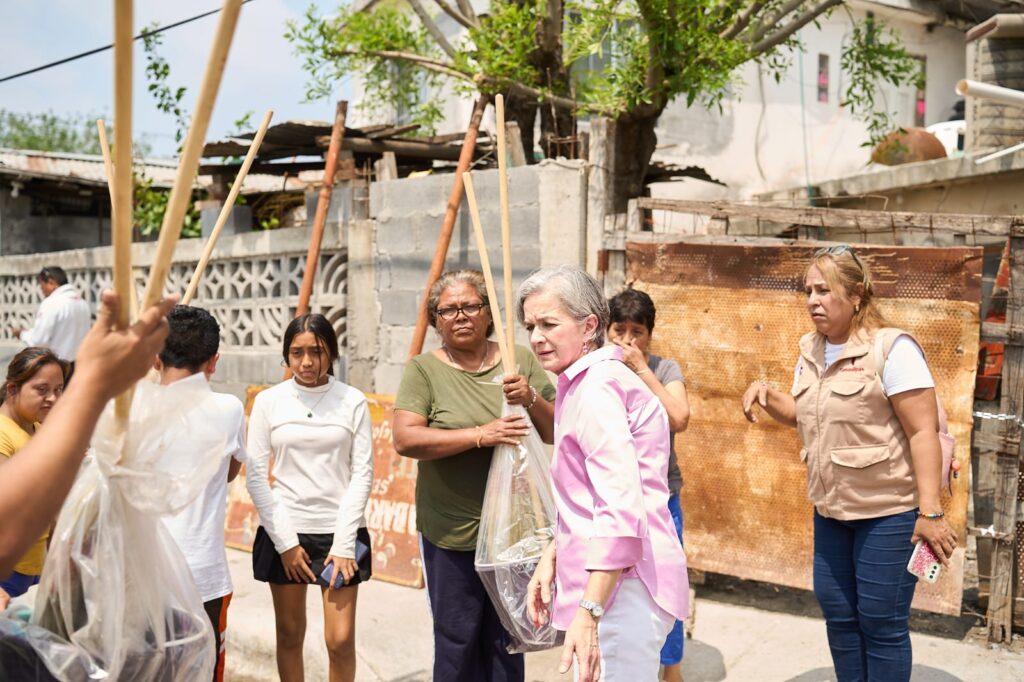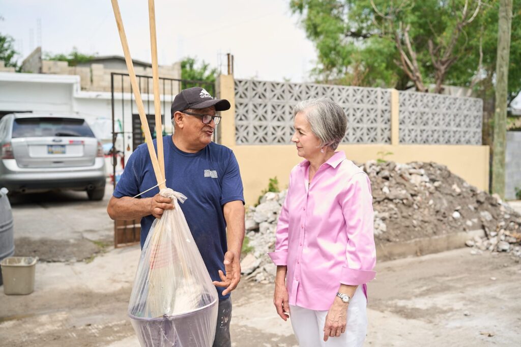 -La presidenta del Sistema DIF Tamaulipas recorrió las colonias afectadas en la ciudad fronteriza, donde se distribuyen, en una primera etapa, alrededor de seis mil paquetes de limpieza e higiene personal