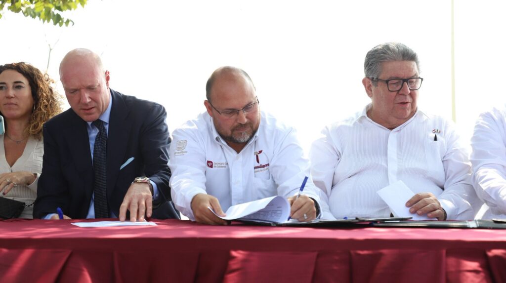 Altamira, Tamaulipas. – En cumplimiento con el compromiso del Gobierno del Estado con la Agenda 2030 de la ONU, en su eje de Agua Limpia y Saneamiento, el secretario general de Gobierno, Héctor Joel Villegas González, en representación del gobernador Américo Villarreal Anaya, participó como testigo de honor en la firma del acuerdo de colaboración para la construcción de la Planta de Tratamiento de Aguas Residuales en el sector de La Pedrera, Altamira. El evento contó también con la presencia del presidente municipal, Armando Martínez Manríquez, y empresarios de la compañía neerlandesa Dutch Clean Tech.