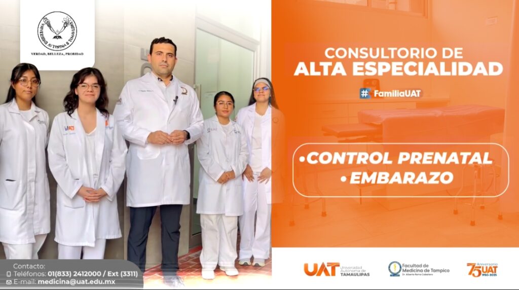 Como parte de las acciones para fortalecer la vinculación social y la formación profesional de sus estudiantes, la Universidad Autónoma de Tamaulipas (UAT), a través de la Facultad de Medicina de Tampico “Dr. Alberto Romo Caballero”, ha iniciado la operación de una nueva Unidad de Consultorios Médicos de Especialidad, en la que se brinda atención prenatal gratuita a mujeres embarazadas de la zona conurbada sur del estado.