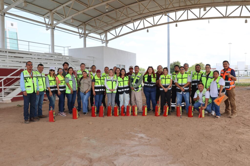 La funcionaria estatal destacó la importancia de mantener una capacitación constante para el personal designado en el manejo de riesgos, por lo que se llevaron a cabo ejercicios prácticos en el recinto ferial para fortalecer sus habilidades en la operación segura y eficaz de los extintores.