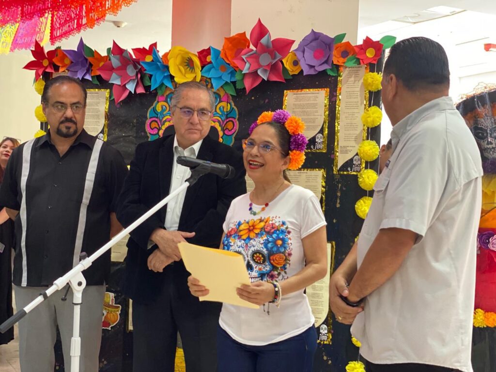 “Es un honor estar aquí y agradecer su presencia en esta conmemoración del Día de Muertos, una tradición muy significativa y representativa de los mexicanos. En este altar recordamos con amor a quienes ya no están físicamente, pero siguen vivos en nuestra memoria y en cada enseñanza que nos dejaron”, expresó.
