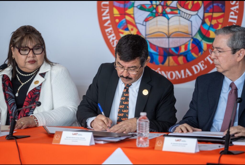 El rector de la Universidad Autónoma de Tamaulipas (UAT), Dámaso Anaya Alvarado, encabezó la aprobación y firma del Manifiesto Institucional para el Uso Ético de la Inteligencia Artificial, que orientará el uso de esta tecnología en la docencia, el aprendizaje, la investigación, la divulgación y creación de conocimiento, así como en los procesos de gestión administrativa y escolar de la institución.