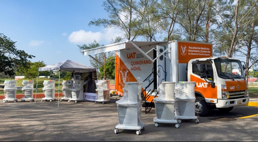 La Universidad Autónoma de Tamaulipas (UAT) presentó el quirófano móvil veterinario que permitirá acercar a la comunidad los servicios médicos de salud animal y cuidado de las mascotas, además de contribuir en las campañas de salud pública y ambientales.