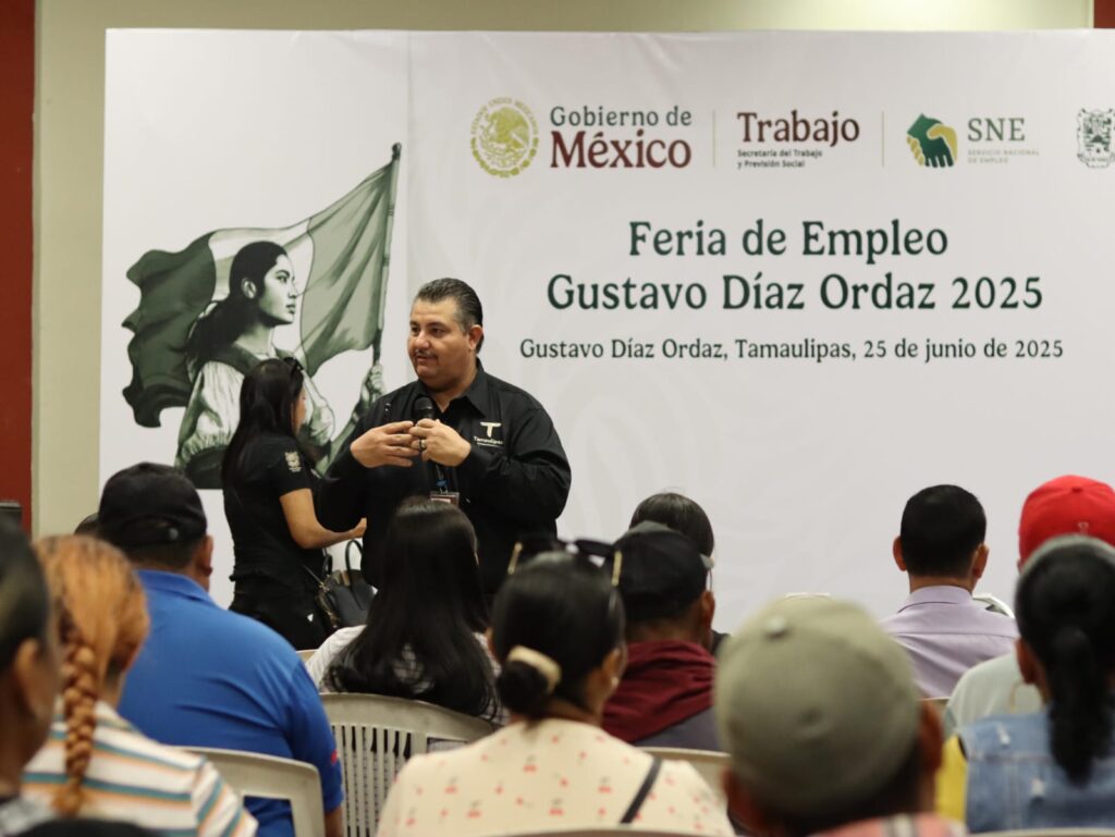 Gustavo Díaz Ordaz, Tamaulipas.- Con una amplia participación ciudadana y una sólida coordinación interinstitucional, se llevó a cabo la Primera Feria de Empleo “Gustavo Díaz Ordaz 2025”, impulsada por la Secretaría del Trabajo y Previsión Social de Tamaulipas, que encabeza Luis Gerardo Illoldi Reyes en colaboración con el gobierno municipal de dicha entidad que preside Nataly García Díaz y el Servicio Nacional de Empleo (SNE), Tamaulipas.