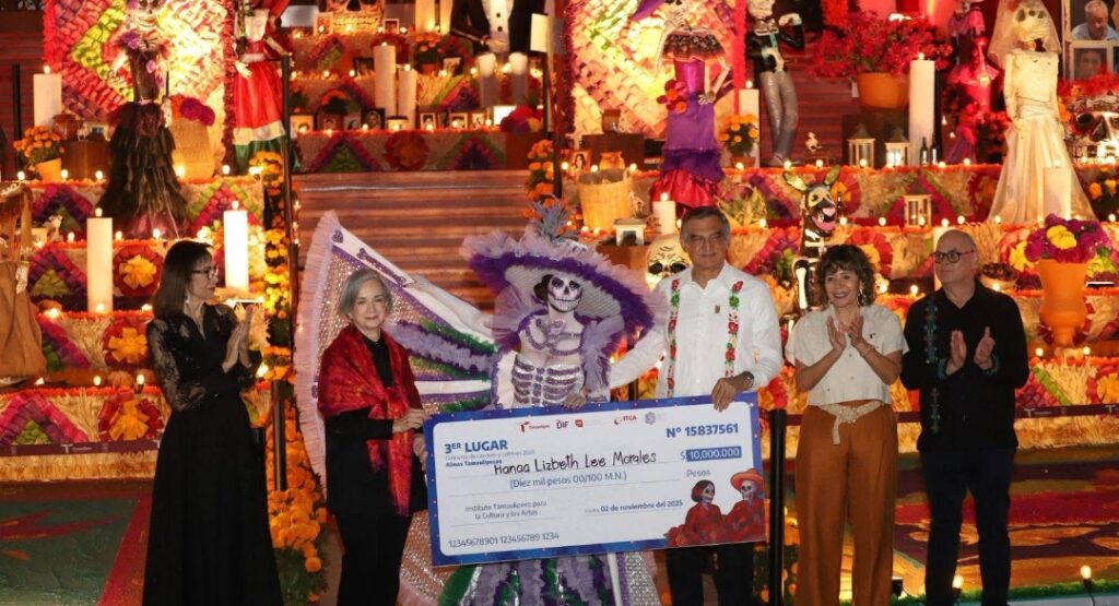 El evento, celebrado en la capital del estado, encabezado por el gobernador, Dr. Américo Villarreal Anaya, reunió a destacadas representaciones de diversos municipios de Tamaulipas, consolidándose como un espacio para promover el arte, la tradición y la identidad cultural en torno a las celebraciones del Día de Muertos.