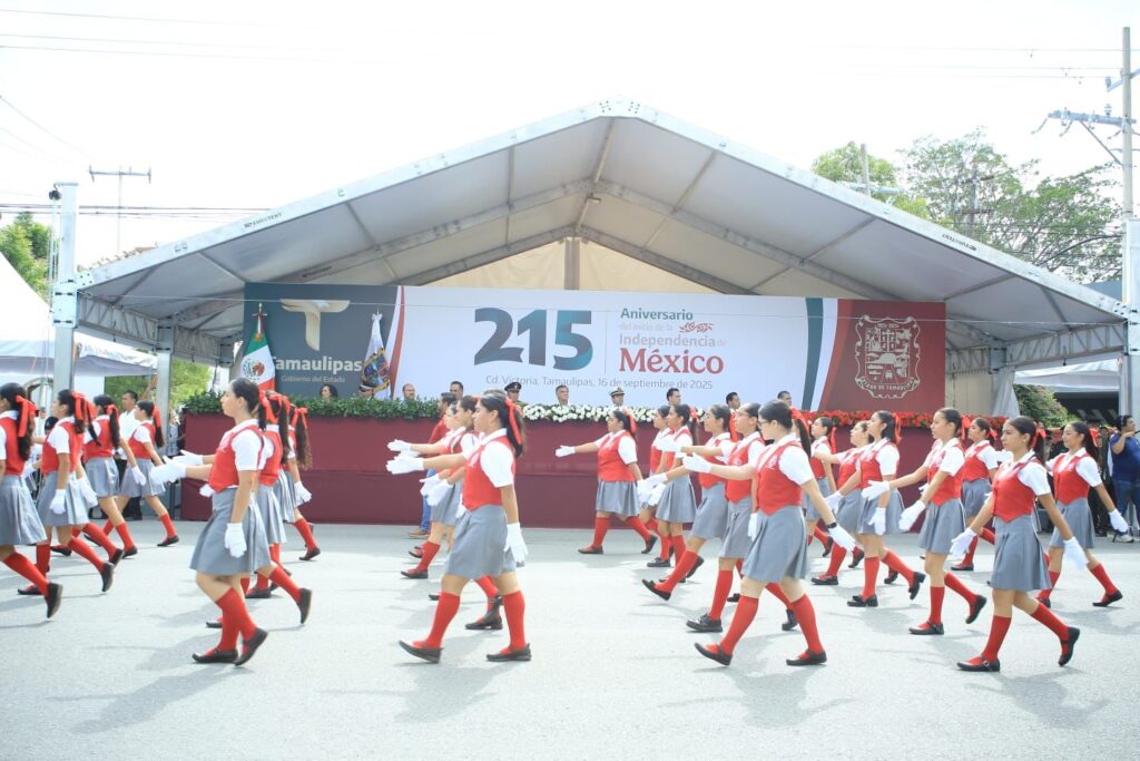 Ciudad Victoria, Tamaulipas. – La conmemoración de las Fiestas Patrias en todo Tamaulipas se celebró sin ningún incidente. «Todo fue en paz», afirmó el gobernador Américo Villarreal Anaya al término del desfile del 215 aniversario del inicio de la Independencia de México, en el que participaron más de 1,767 estudiantes y más de 1,100 elementos de las fuerzas armadas.