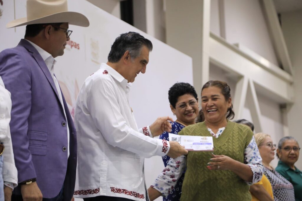 Durante la entrega simbólica a 30 de las dos mil beneficiarias presentes, acompañado por Luis Lauro Reyes Rodríguez, delegado de Programas Federales para el Desarrollo en Tamaulipas, y de Silvia Casas González, secretaria de Bienestar Social, el gobernador mencionó que, tal como lo ha señalado la presidenta, este apoyo es un reconocimiento a la contribución que durante muchos años han tenido las mujeres como protectoras de la familia y protectoras de los valores más valiosos de la formación e integración de la sociedad.