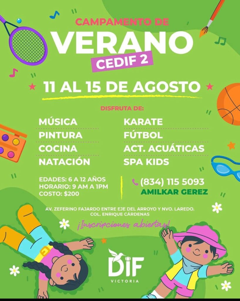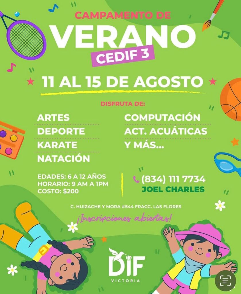 Del 11 al 15 de agosto, niñas y niños de 6 a 12 años podrán disfrutar de actividades recreativas, deportivas, artísticas y acuáticas en los Campamentos de Verano CEDIF 2 y CEDIF 3.