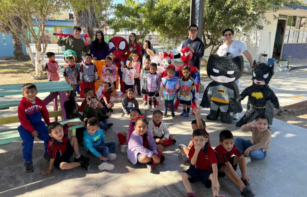 Las actividades siguieron con la donación de piñatas al Jardín de Niños del Ejido La Luz, llevando alegría a la niñez y fortaleciendo los lazos comunitarios. De igual forma, la comunidad estudiantil y docente llevó cuentos, libros de colorear y colores a la Casa Hogar del Niño Matamorense, así como a la Escuela Primaria Miguel García Posada, fomentando la creatividad y el aprendizaje de la niñez.