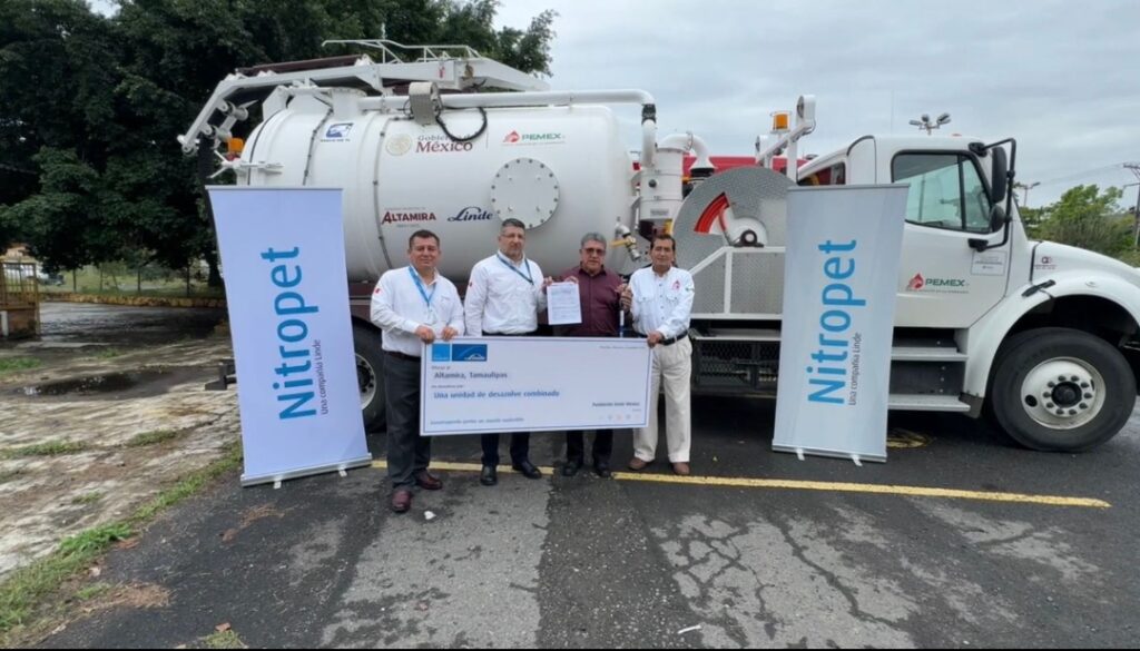 La entrega, realizada por Petróleos Mexicanos (PEMEX) y la empresa Linde NITROPET, consiste en un camión de bomberos modelo 2024 y un equipo combinado de desazolve modelo 2025, con una inversión conjunta aproximada de 23 millones de pesos.