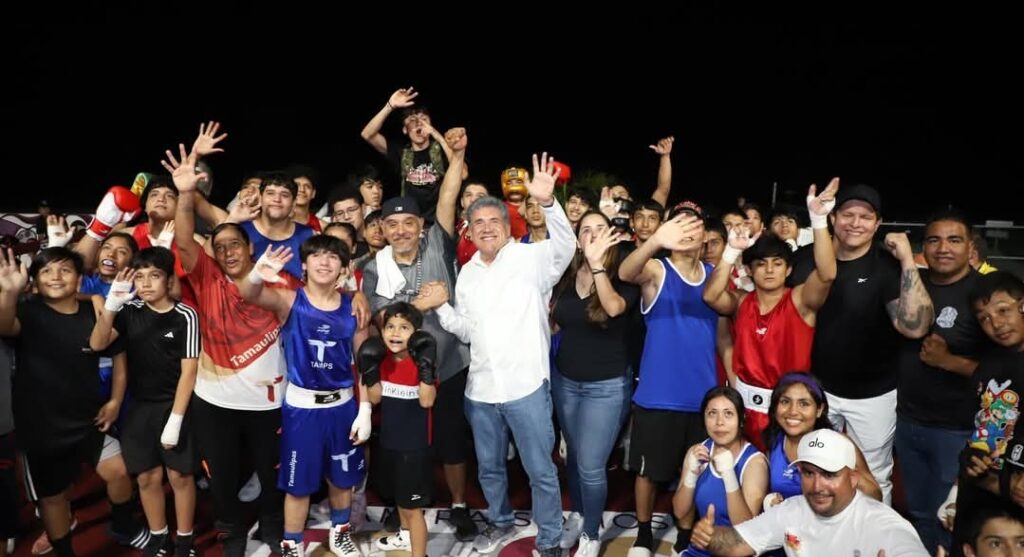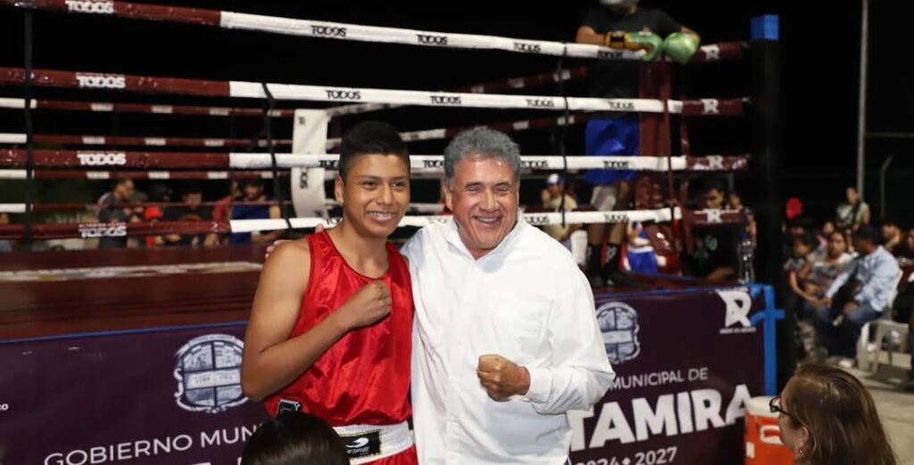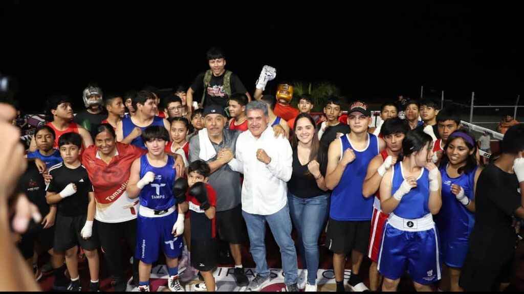 el alcalde Altamira Armando Martínez Manríquez dijo que -junto a mi esposa Rossy Luque De Martínez y mi hija Rossy Martinez Luque, presenciamos el evento de box “Guerra contra la Adicción” en el Fraccionamiento Canarios-, una iniciativa que promueve el deporte como herramienta para alejar a nuestras y nuestros jóvenes de las adicciones, tal como lo ha impulsado nuestra presidenta Claudia Sheinbaum Pardo.