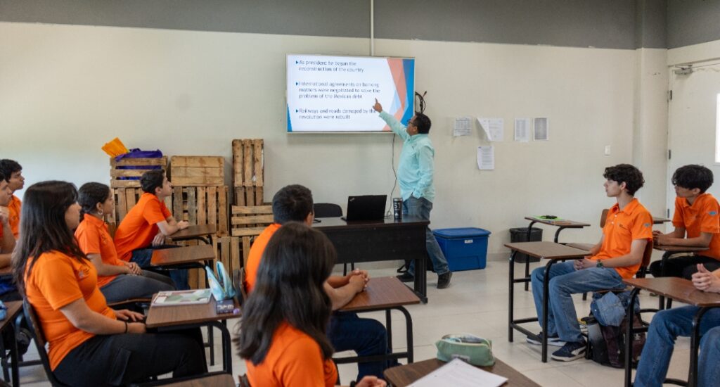 Mencionó que el programa bilingüe representa una de las principales fortalezas de la escuela, al permitir que los jóvenes cursen diversas asignaturas en inglés, fomentando así sus competencias lingüísticas y académicas desde el nivel bachillerato.