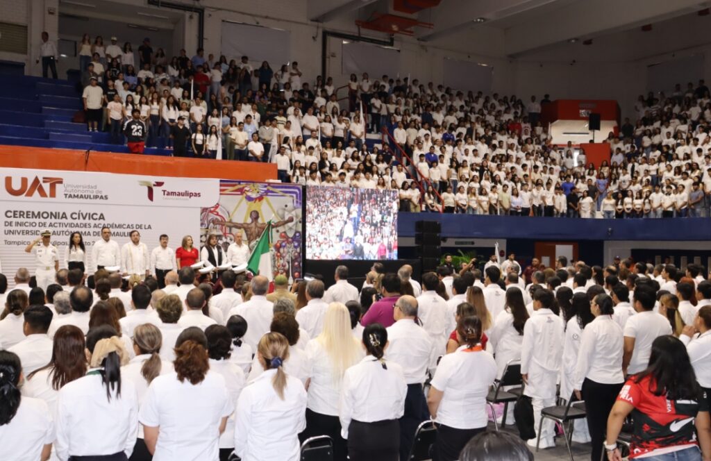 El rector de la Universidad Autónoma de Tamaulipas (UAT), Dámaso Anaya Alvarado, declaró formalmente inaugurado el ciclo escolar Otoño 2025, con la Ceremonia Cívica de Apertura de Actividades Académicas que presidió en el Gimnasio Multidisciplinario del Campus Tampico.