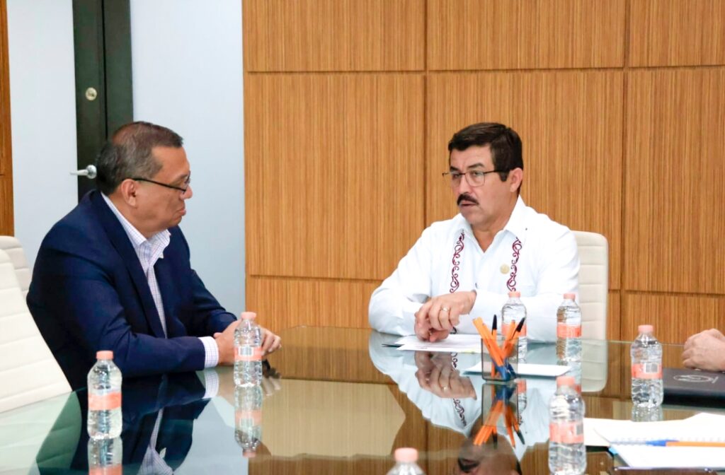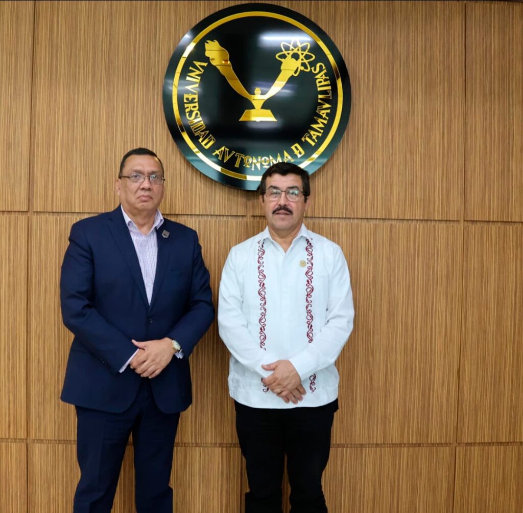 El rector de la Universidad Autónoma de Tamaulipas (UAT), Dámaso Anaya Alvarado, sostuvo una reunión con el delegado estatal del Instituto Mexicano del Seguro Social (IMSS), José Luis Aranza Aguilar, con el propósito de consolidar acciones conjuntas que fortalezcan la atención y el bienestar de la comunidad universitaria en la región de Nuevo Laredo.