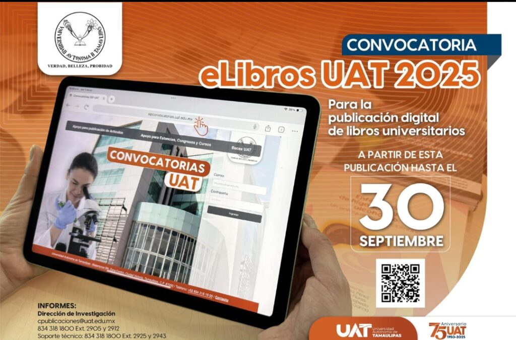 La Universidad Autónoma de Tamaulipas (UAT) dio a conocer la convocatoria “eLibros UAT 2025”, una iniciativa dirigida a fomentar la publicación digital de libros universitarios, y a fortalecer la producción académica con sentido humanista y socialmente responsable.