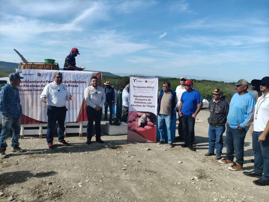 González, Tamaulipas. — Como parte de las acciones para fortalecer el sector pesquero en Tamaulipas, la Secretaría de Desarrollo Rural, Pesca y Acuacultura llevó a cabo la siembra de 200 mil alevines de tilapia en la presa Emilio Portes Gil y en la presa Vicente Guerrero, con el objetivo de impulsar la pesca comercial y el desarrollo económico de las comunidades rurales.