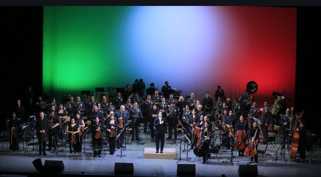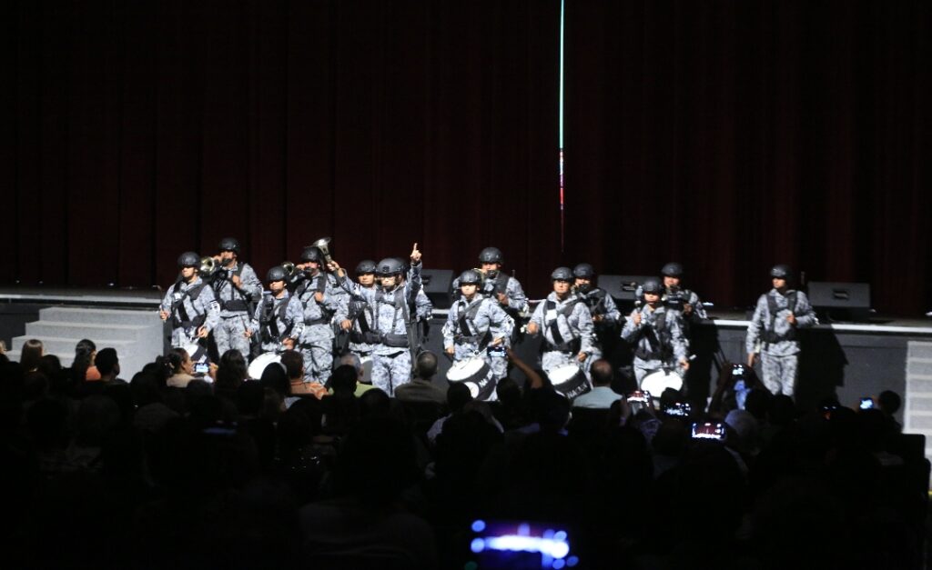En la segunda parte del concierto se realizó una fusión única con la Orquesta Sinfónica de la Universidad Autónoma de Tamaulipas y la Banda de Guerra Monumental de la Coordinación Territorial Región Golfo de la GN.