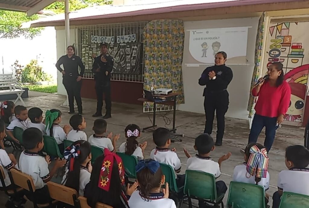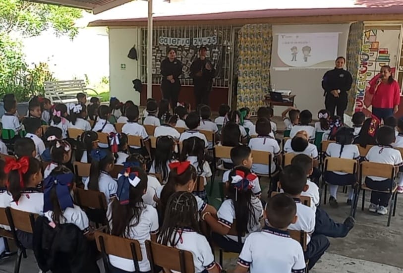 Tampico, Tamaulipas.- Gracias a la estrategia de proximidad y difusión permanente de la Guardia Estatal de Género, planteles del nivel básico en el municipio de Tampico continúan gestionando estas pláticas preventivas que contribuyen a crear entornos seguros desde el nivel preescolar hasta la secundaria.
