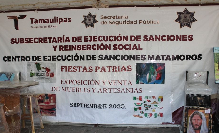 Matamoros, Tamaulipas.- En el marco de las fiestas patrias, el Centro de Ejecución de Sanciones (CEDES) en el municipio de Matamoros instaló un módulo de exposición y venta de productos elaborados por personas privadas de la libertad (PPLs).