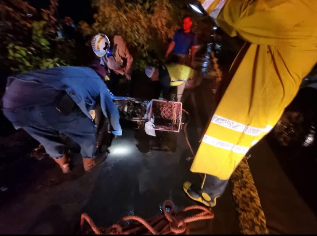 • Se rescató a un masculino que permanecía en el interior de un vehículo arrastrado por la corriente, en el mismo punto, se apoyó en la extracción de un vehículo Nissan March varado por el agua.