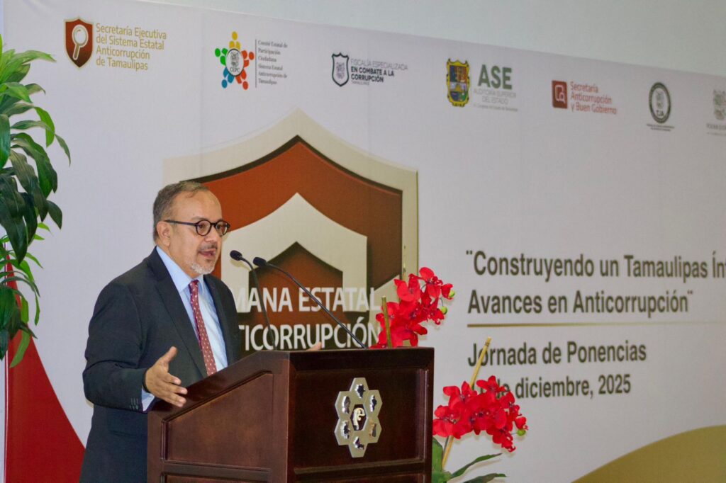 Ciudad Victoria Tamaulipas.-La Secretaría Ejecutiva del Sistema Estatal Anticorrupción de Tamaulipas llevó a cabo la jornada de ponencias “Construyendo un Tamaulipas Íntegro: Avances Anticorrupción”, evento organizado y encabezado por el secretario técnico, Félix Luis Velasco Arévalo, con el propósito de fortalecer la reflexión, el intercambio de conocimientos y la actualización profesional en materia de transparencia, fiscalización y combate a la corrupción.