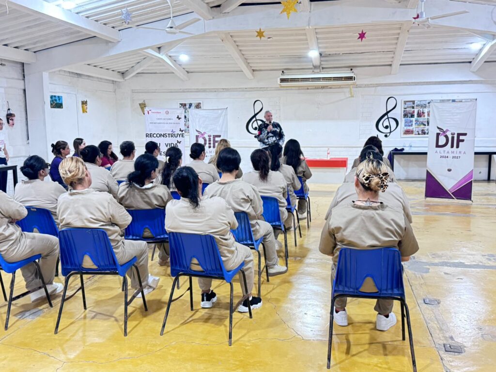 Altamira, Tamaulipas.- Como parte de las actividades conmemorativas del Día Internacional de la Mujer, el Centro de Ejecución de Sanciones (CEDES) del municipio de Altamira recibió a integrantes del voluntariado del Ayuntamiento, quienes impartieron la conferencia “Reconstruye tu vida desde adentro”.
