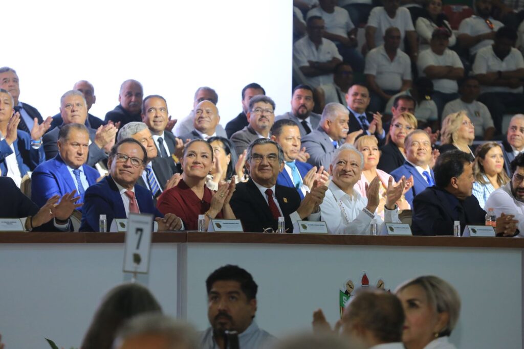Desde el Centro de Convenciones de Ciudad Madero, junto con el secretario del Trabajo, Marath Bolaños López, representante de la presidenta Claudia Sheinbaum, y el director general de Pemex, Víctor Rodríguez Padilla, el gobernador de Tamaulipas recordó que él también fue «petrolero».