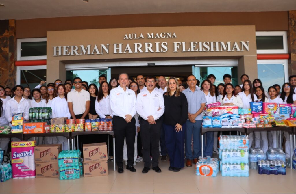 En el mismo marco, se instaló un Centro de Acopio frente al Aula Magna “Herman Harris Fleishman”, con el fin de recolectar alimentos no perecederos, artículos de limpieza y productos de higiene personal para apoyar a las familias de la comunidad universitaria y de la región que resultaron afectadas por las lluvias.