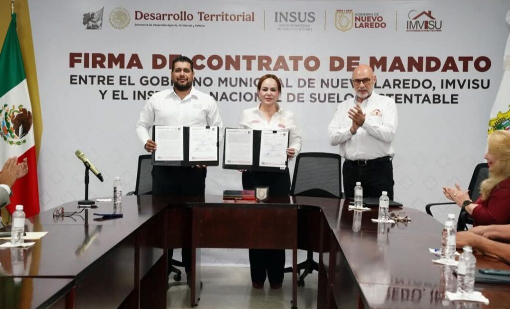Gracias a la firma del convenio entre la alcaldesa Carmen Lilia Canturosas, el IMVISU Nuevo Laredo y el Instituto Nacional del Suelo Sustentable-INSUS, avanzamos en la regularización de tierras en el predio Las Torres Etapa II.