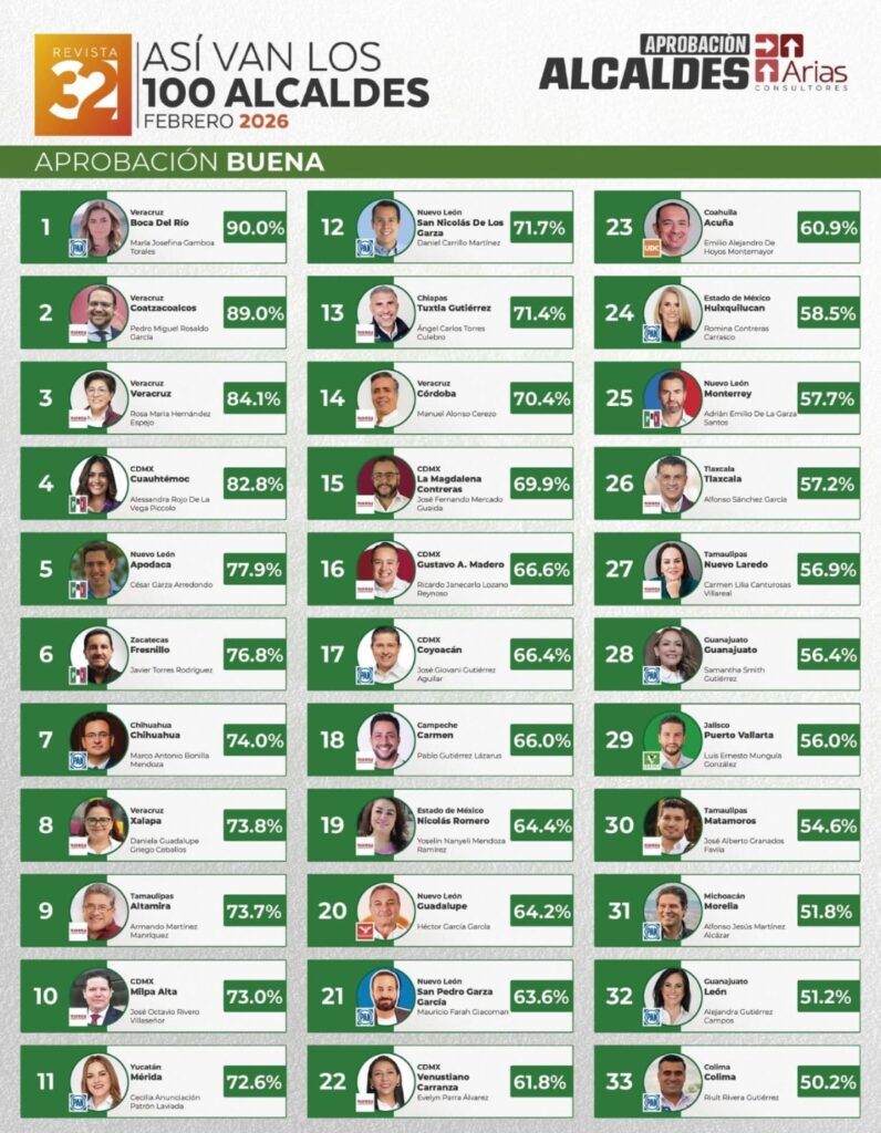 Arias Consultores, posiciona al edil altamirense en el lugar número nueve a nivel nacional con una aprobación ciudadana del 73.7 por ciento, consolidándose dentro del Top 10 de los presidentes municipales mejor calificados en México.