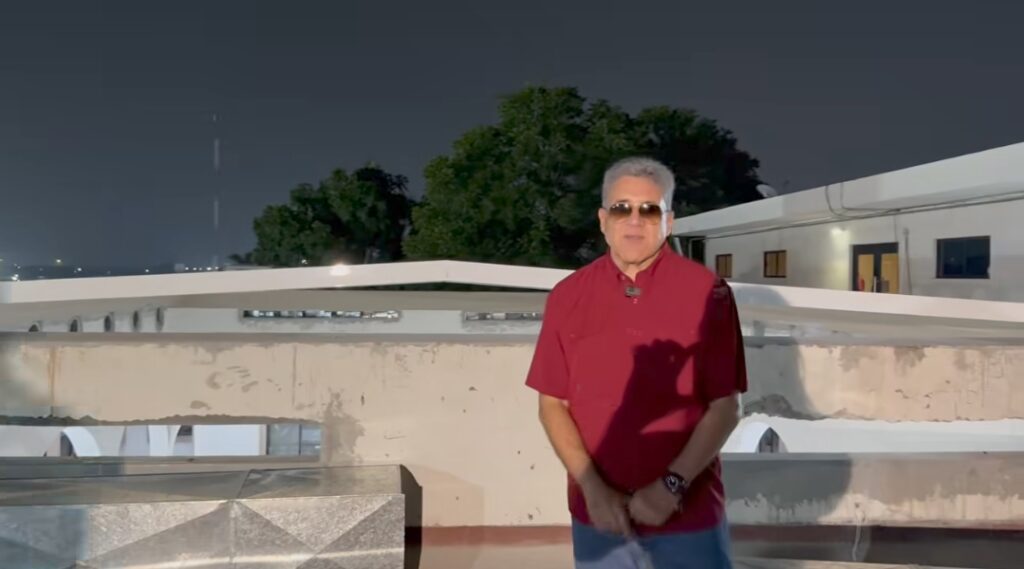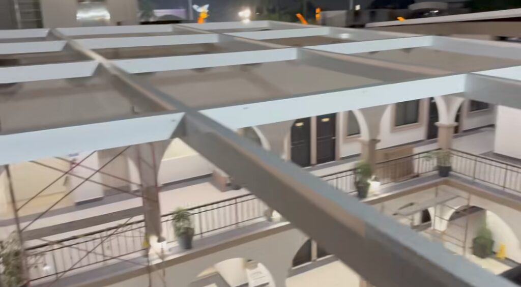 El alcalde Altamira Dr. Armando Martínez Manríquez nos saluda y muestra a la vez, los avances de la transformación física del palacio municipal para instalar Aire acondicionado en el atrii.